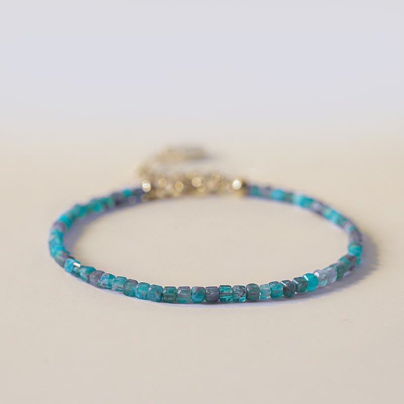 🔮 Buddha Stone 2.5mm Apatite Ultra-thin Beads 14k Gold Plated Copper Heart Motivation Bracelet by AetherFate