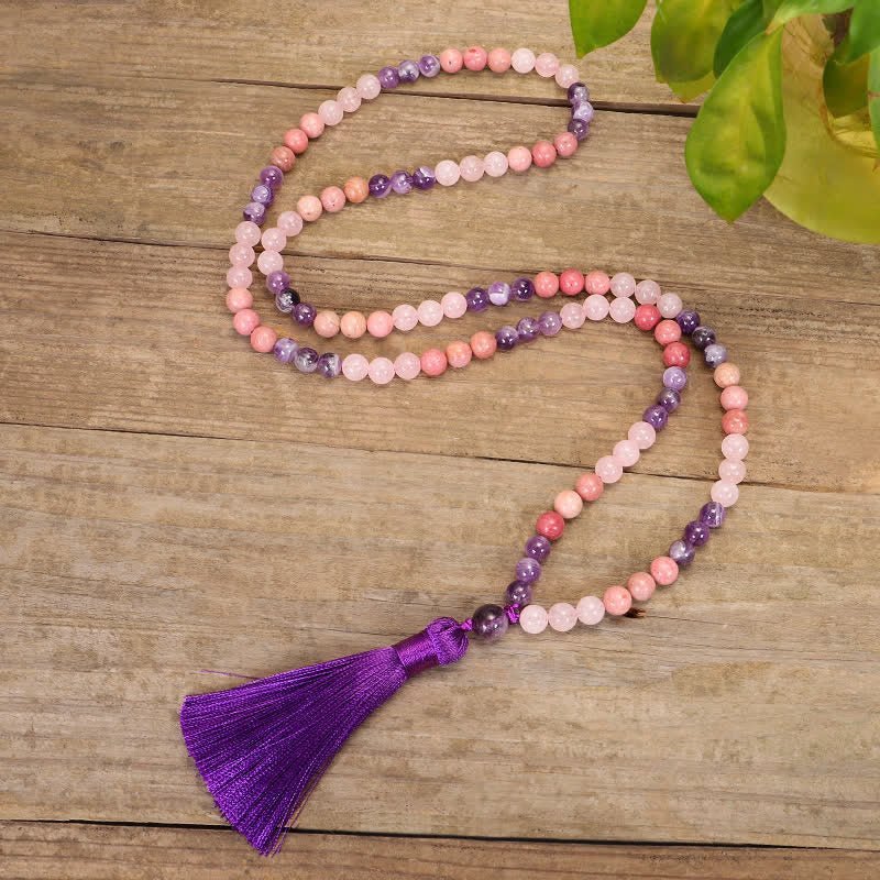 🔮 Quiet Calm, Worn Daily. | Quiet Calm, Worn Daily. 108 Mala Beads Amethyst Rose Quartz Spiritual Tassel Bracelet by AetherFate