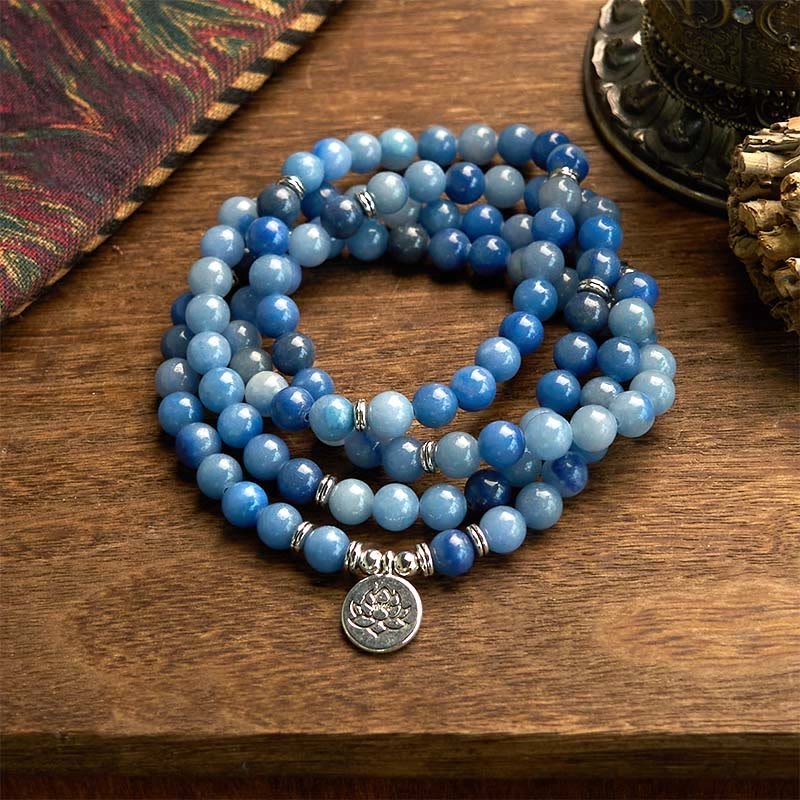 🔮 For When You Need Quiet Presence | 108 Mala Beads Multi-layer Blue Aventurine Lotus Calm Bracelet