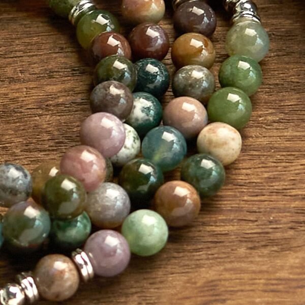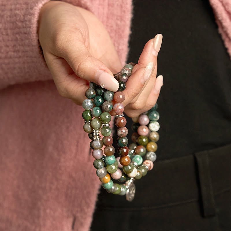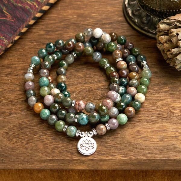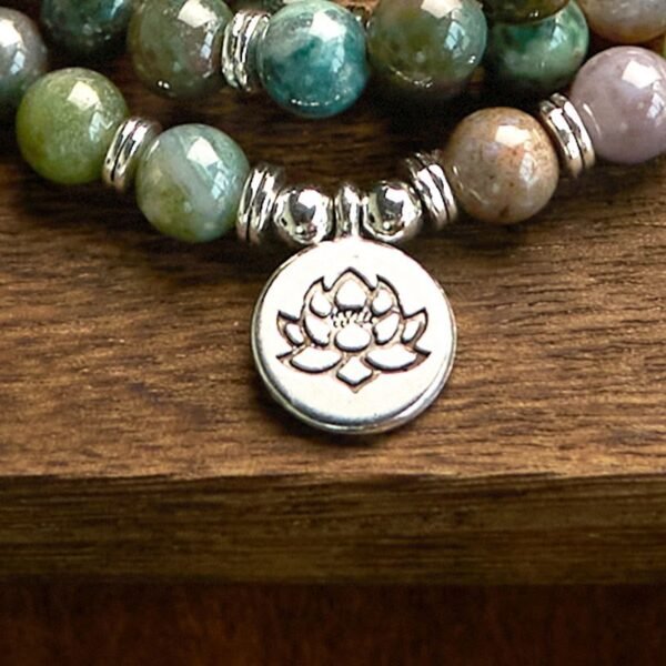 🔮 For When You Need Gentle Presence | 108 Mala Beads Stone Indian Agate Lotus Calm Bracelet | AetherFate