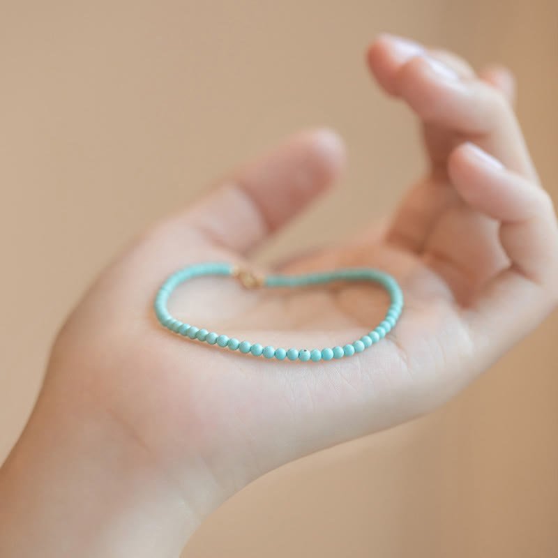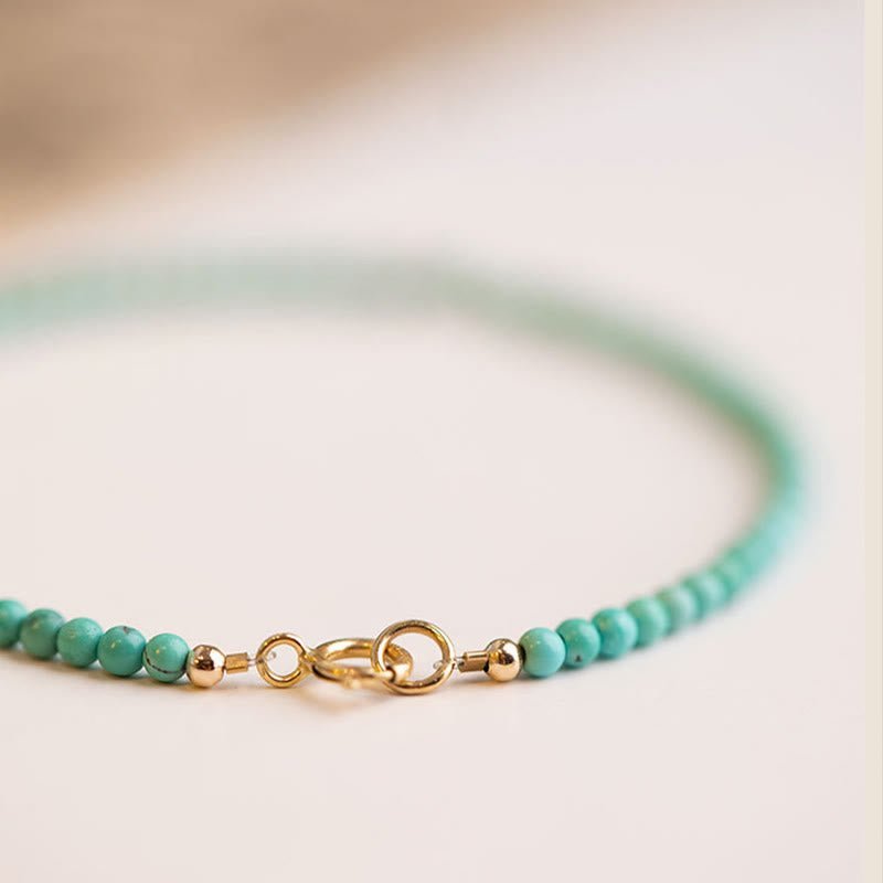 🔮 Warmth & Connection, Worn Daily. | 2mm Turquoise Ultra-thin Beads 14k Gold Plated Copper Wisdom Bracelet by AetherFate