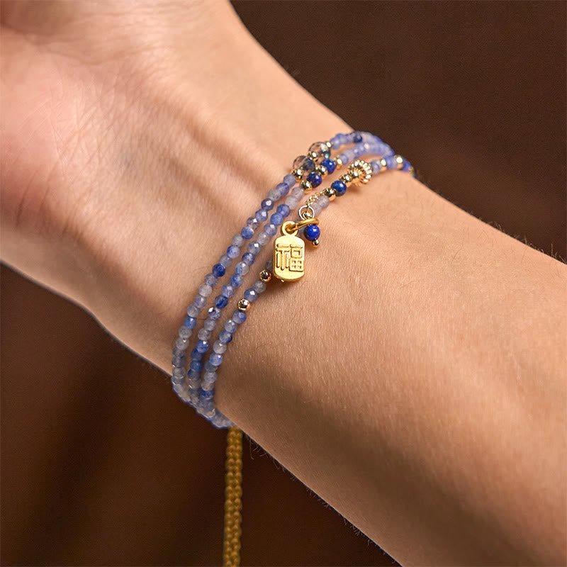 🔮 Gentle Presence, Worn Daily. | 3mm Ultra-thin Beads Lazurite Triple Wrap Fu Character Positive Bracelet by AetherFate