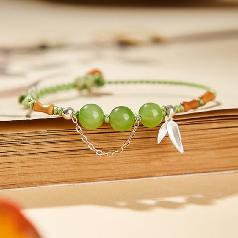 🔮 Sterling Silver Bamboo Leaves Hetian Jade Chalcedony Beads Blessing Braided Bracelet | Your Quiet Daily Anchor for Quiet Strength | AetherFate