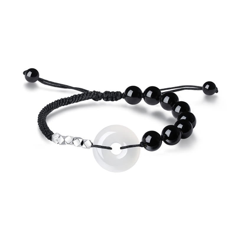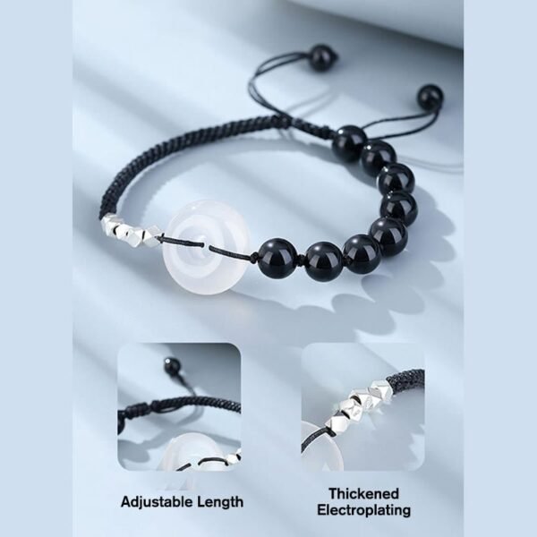 🔮 For When You Need Clarity & Grounding | Gentle Focus, Worn Daily. Sterling Silver Black Obsidian Agate Peace Buckle Strength Bracelet | AetherFate