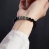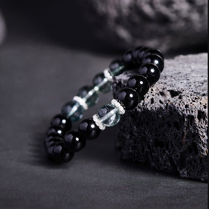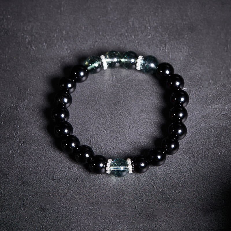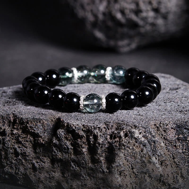 🔮 Clarity & Grounding, Worn Daily. | Sterling Silver Black Obsidian Green Phantom Strength Bracelet by AetherFate