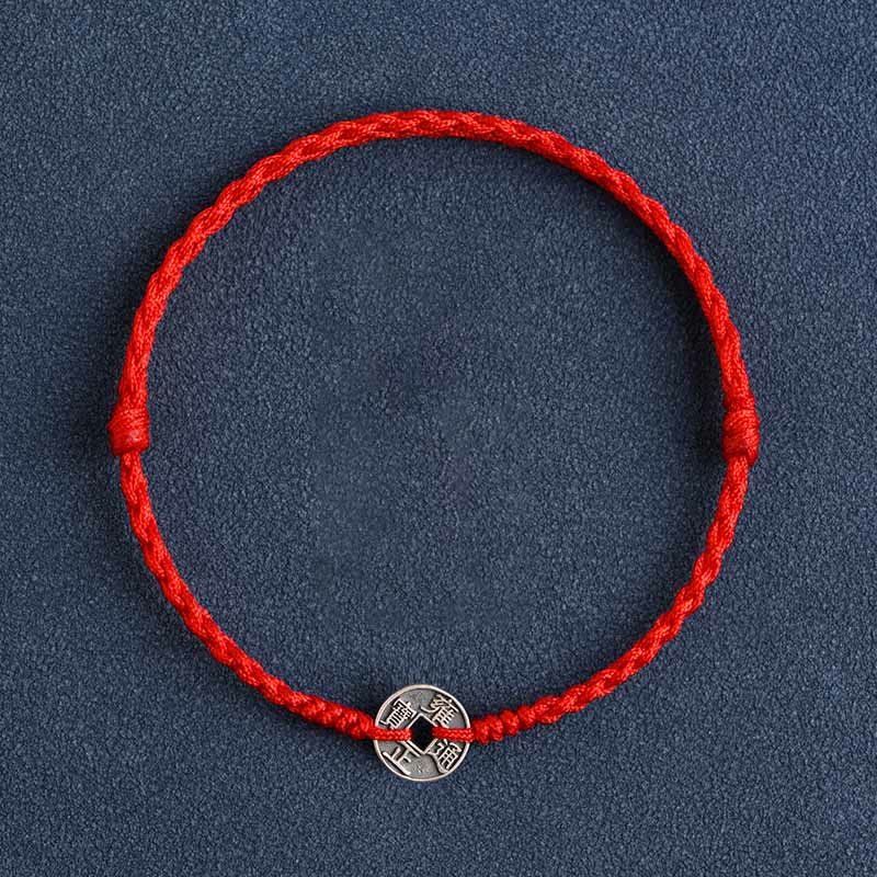🔮 For When You Need Gentle Presence | Gentle Focus, Worn Daily. Sterling Silver Five Emperor Coins Red String Braided Bracelet Anklet | AetherFate