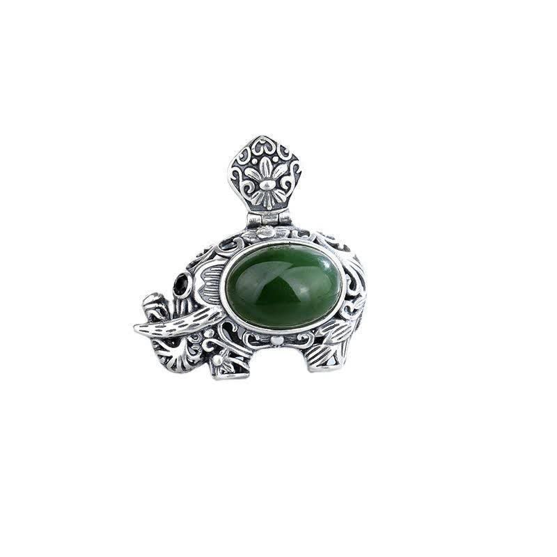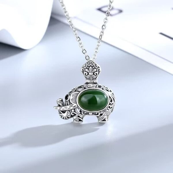 🔮 For When You Need Gentle Clarity | Gentle Focus, Worn Daily. Sterling Silver Hetian Cyan Jade Elephant Success Necklace Pendant | AetherFate