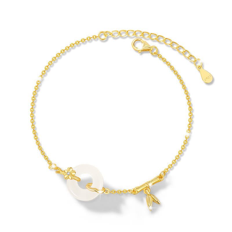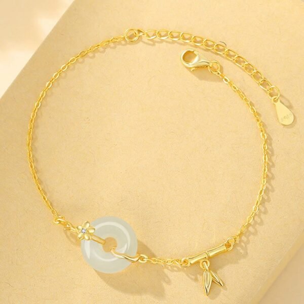 🔮 Gentle Focus, Worn Daily. Sterling Silver Hetian Jade Chalcedony Peace Buckle Bamboo Leaf Prosperity Chain Bracelet | Your Quiet Daily Anchor for Quiet Strength | AetherFate