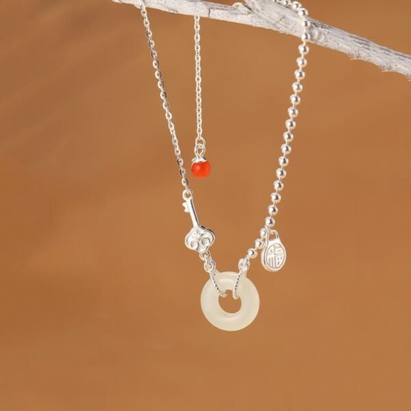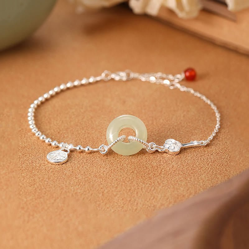 🔮 Sterling Silver Hetian Jade Peace Buckle Fu Character Chain Bracelet by AetherFate