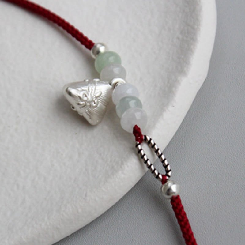 🔮 Quiet Strength, Worn Daily. | Gentle Focus, Worn Daily. Sterling Silver Jade Red String Zongzi Charm Abundance Bracelet by AetherFate