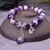 A gorgeous purple gemstone. the amethyst is said to bring strength. courage. and peace. These benefits can help promote healing. It’s a soothing stone with peaceful properties. with a quiet energy that should also help release creativity. Since the stone has such tranquil qualities. it’s a great gift for anyone suffering from anxiety. mood disorders. and addictions. It is said to promote spiritual and physical health.