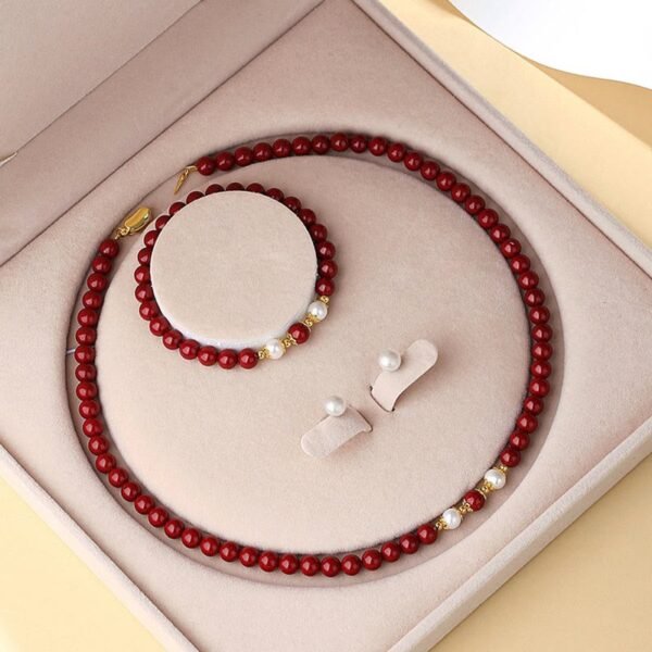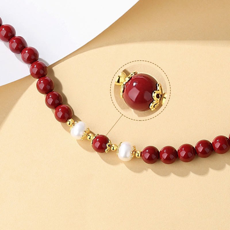 🔮 For When You Need Grounded Warmth | Gentle Focus, Worn Daily. Sterling Silver Cinnabar Pearl Necklace Pendant Bracelet Earrings Jewelry Set | AetherFate