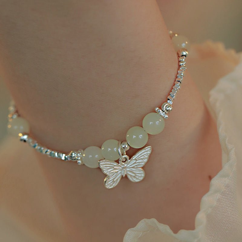 🔮 Quiet Strength, Worn Daily. | Gentle Focus, Worn Daily. Sterling Silver Hetian Jade Butterfly Charm Bracelet by AetherFate