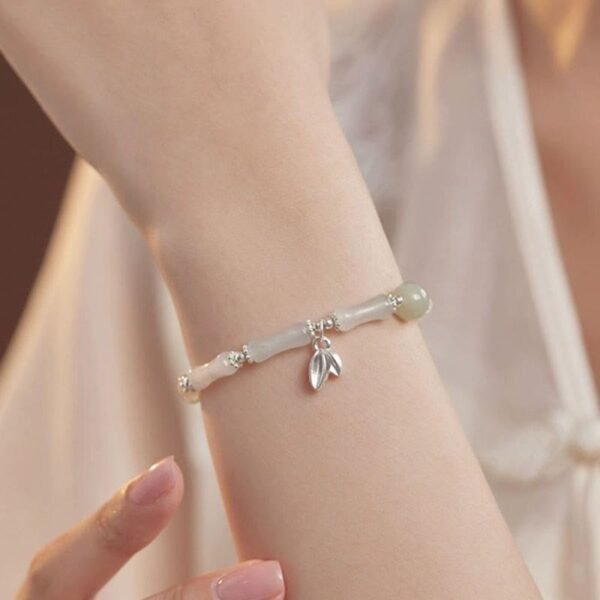 🔮 Sterling Silver Tianshan Jade Bamboo Charm Bracelet by AetherFate
