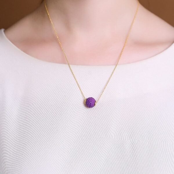 🔮 Gentle Focus, Worn Daily. Sterling Silver Plated Gold Purple Mica Stone Relief Bead Positive Necklace Pendant Bracelet Set by AetherFate