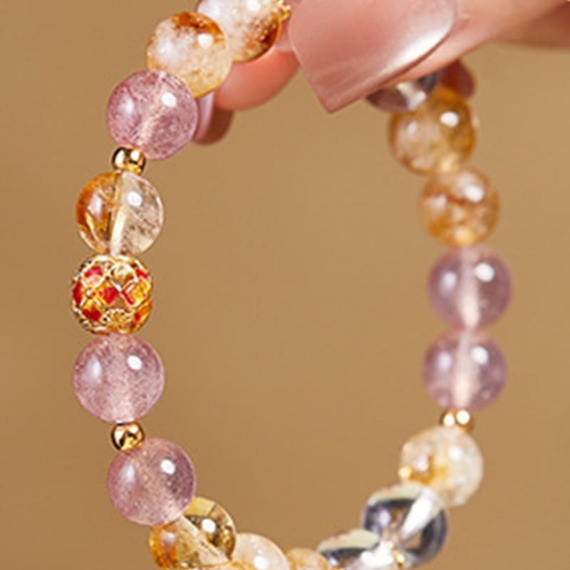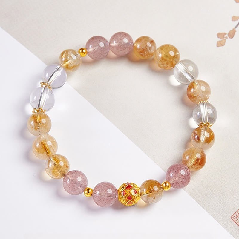 🔮 999 Sterling Silver Citrine Strawberry Quartz White Crystal Bracelet | Your Quiet Daily Anchor for Gentle Clarity | AetherFate
