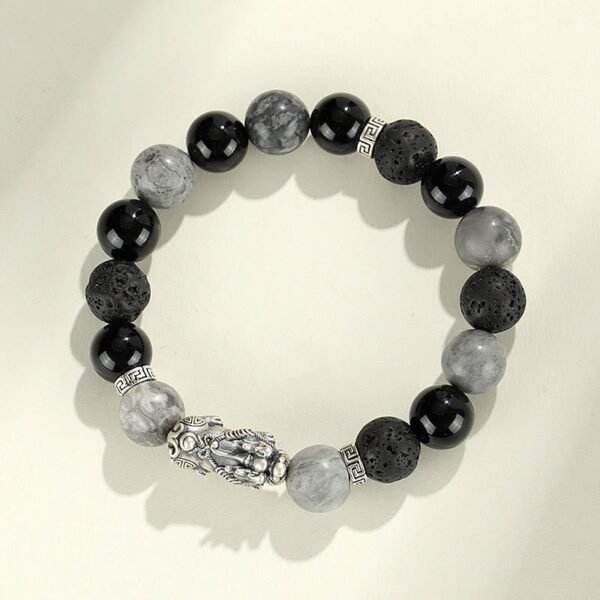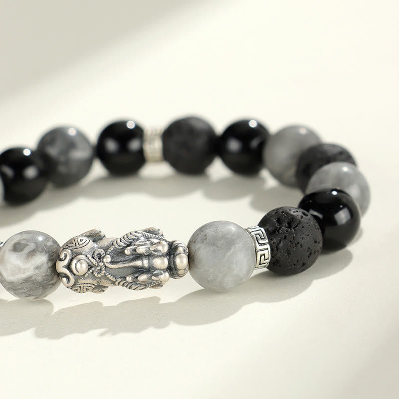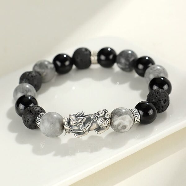 🔮 Gentle Presence, Worn Daily. | 999 Sterling Silver PiXiu Black Onyx Grey Jasper Lava Rock Bracelet by AetherFate