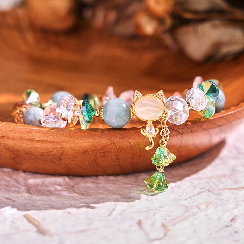 🔮 Quiet Calm, Worn Daily. Amethyst Green Crystal Red Crystal Cat Balance Bracelet by AetherFate