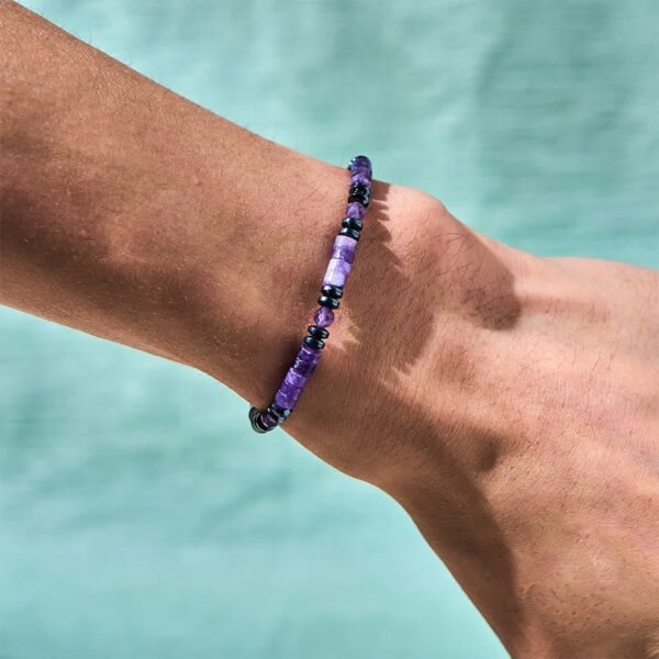 When it rests quietly against your wrist, the smooth, cool purple feel against your skin feels like a piece of the night sky. A quiet presence that doesn’t ask for attention – it just stays with you.