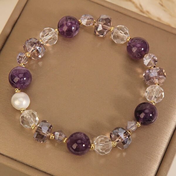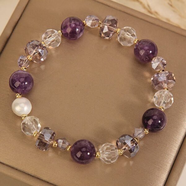 🔮 Amethyst White Crystal Pearl Communication Bracelet by AetherFate