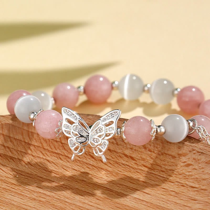 🔮 For When You Need Gentle Presence | Quiet Presence, Worn Daily. Chrysoberyl Cat’s Eye Chalcedony Butterfly Love Bracelet | AetherFate