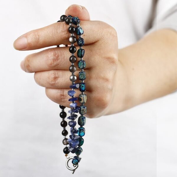 🔮 Quiet Warmth, Worn Daily. Emperor Stone Sodalite Gold Sheen Obsidian Balance Triple Wrap Bracelet by AetherFate