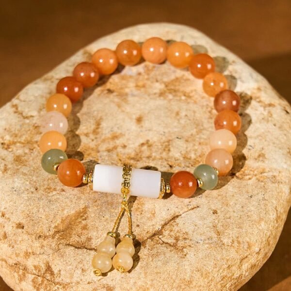 🔮 Golden Silk Jade Beads Gourd White Crystal Bracelet | Your Quiet Daily Anchor for Quiet Warmth | AetherFate