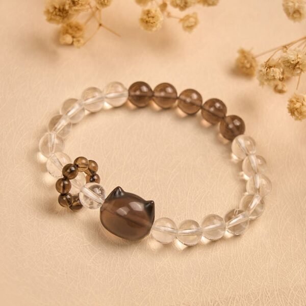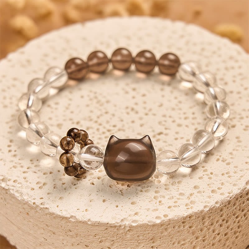 🔮 For When You Need Gentle Clarity | Gentle Clarity, Worn Daily. Japanese Bobtail Cat White Crystal Smoky Quartz Bracelet | AetherFate