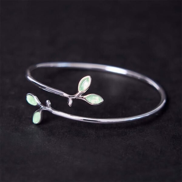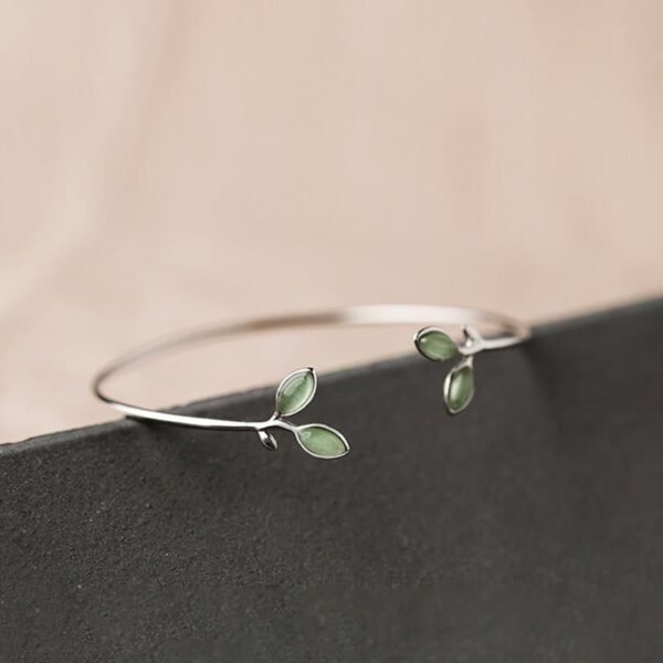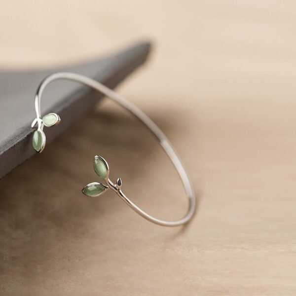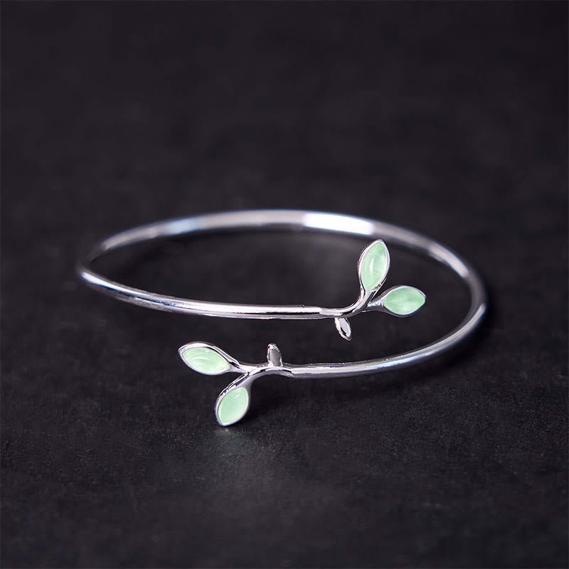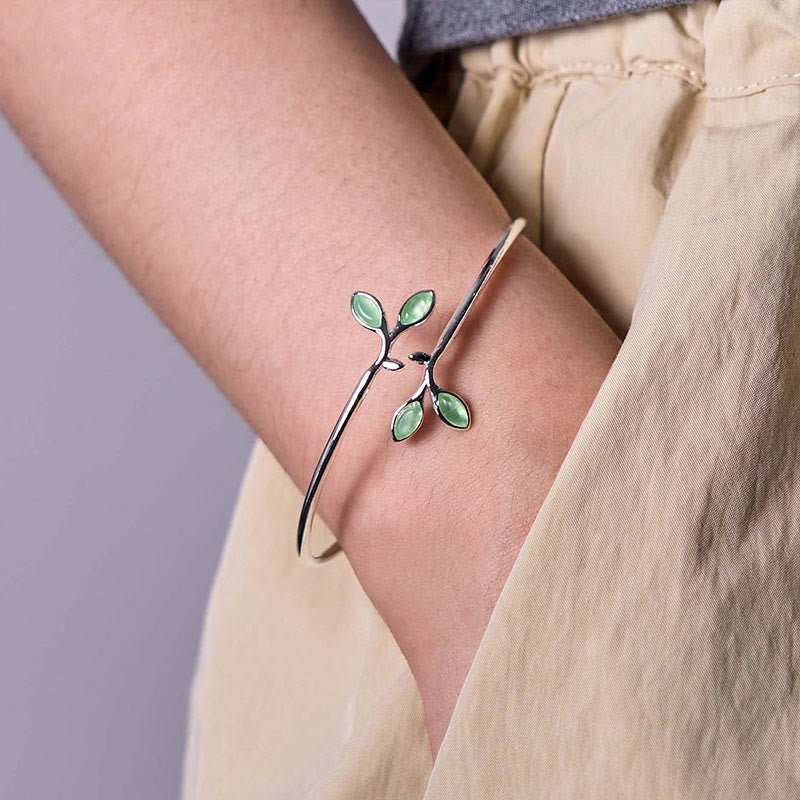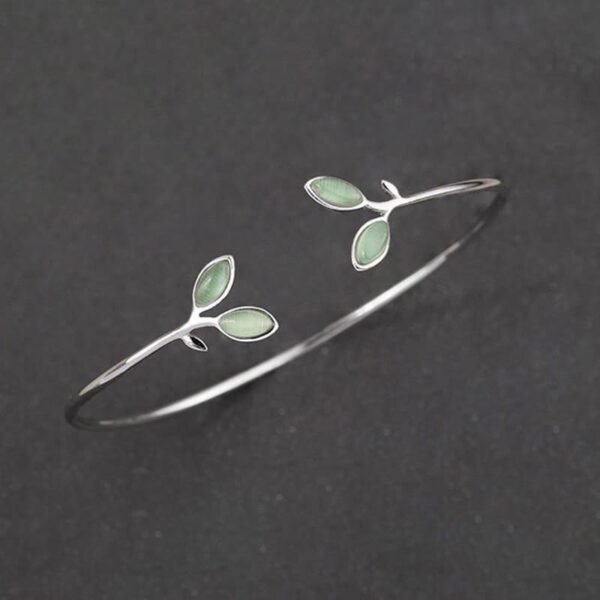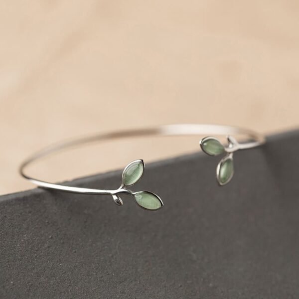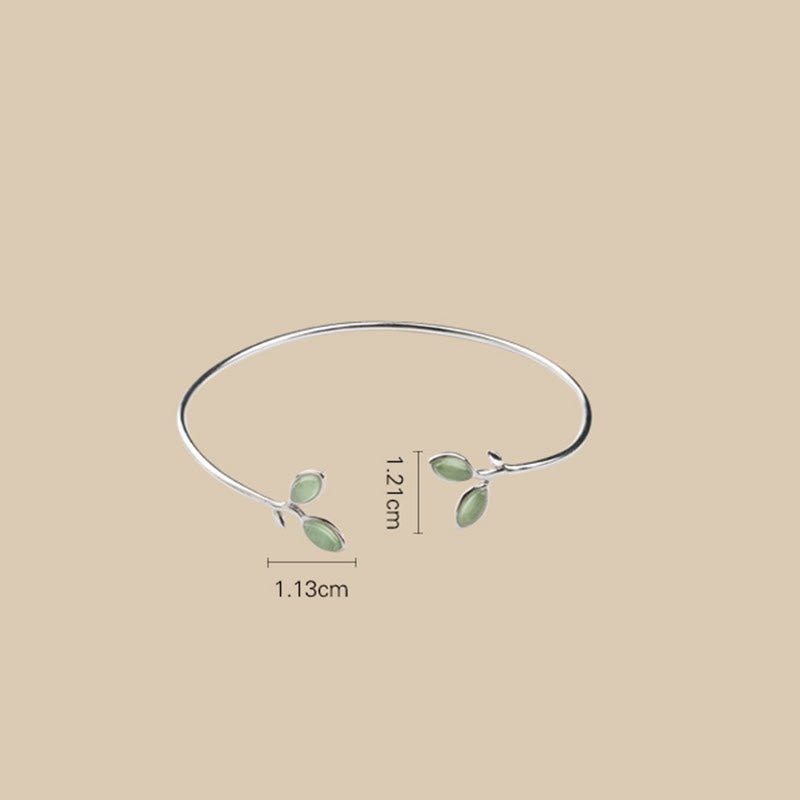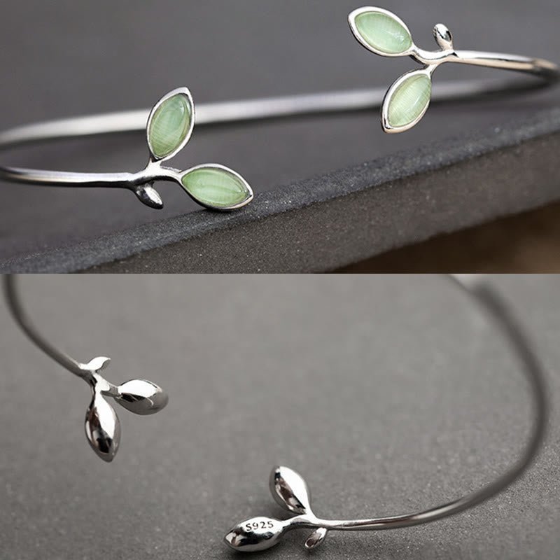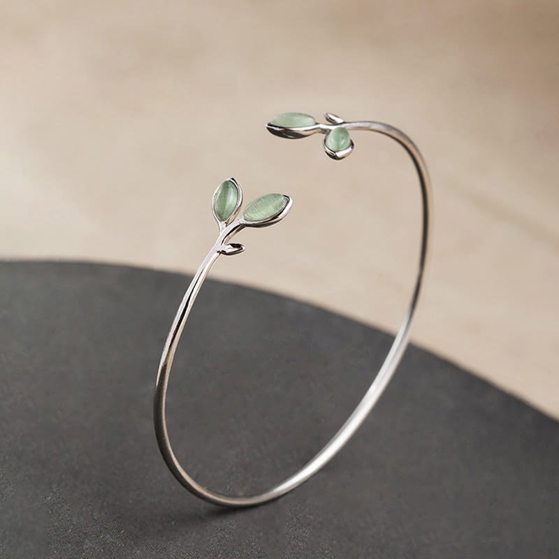 🔮 Leaf Pattern Cat Eye Support Cuff Bracelet Bangle | Your Quiet Daily Anchor for Gentle Presence | AetherFate