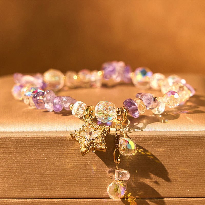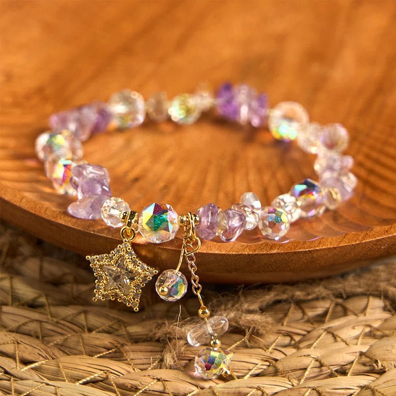 🔮 Quiet Calm, Worn Daily. Amethyst Crystal Star Charm Positive Transformation Bracelet by AetherFate