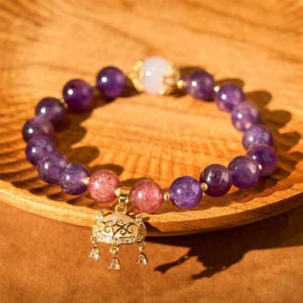 🔮 Amethyst Stberry Quartz Peace Lock Charm Positive Bracelet by AetherFate