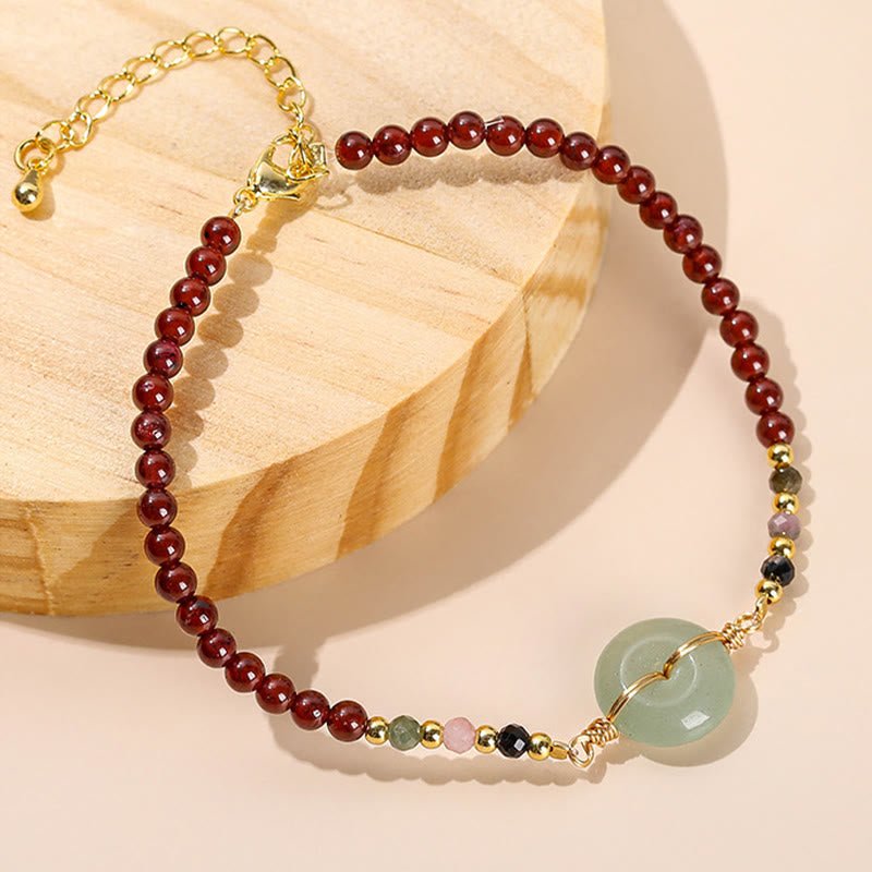 Discover inner peace and tranquility with the Buddha Stones Garnet Peace Buckle Bead Calm Bracelet. Crafted with a meaningful peace buckle symbol. it represents harmony and completeness. The soothing properties of garnet purify and protect. bringing stability and passion. Embrace self-care and positive energy with this exquisite bracelet.
