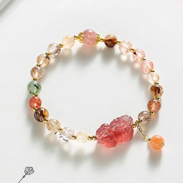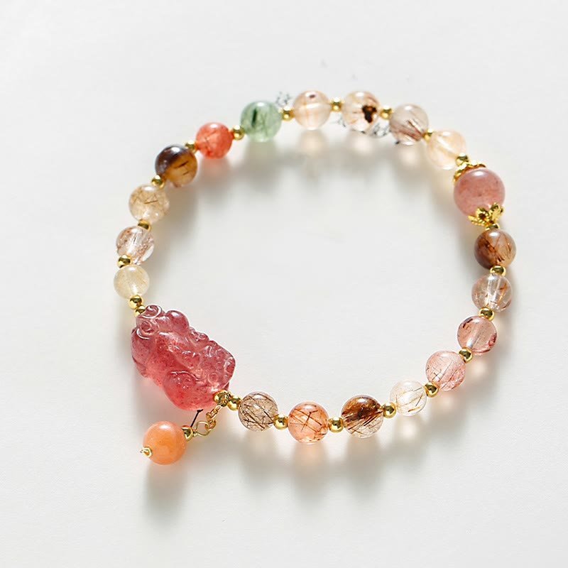 🔮 Rutilated Quartz Stberry Quartz PiXiu Bracelet | Your Quiet Daily Anchor for Gentle Presence | AetherFate