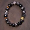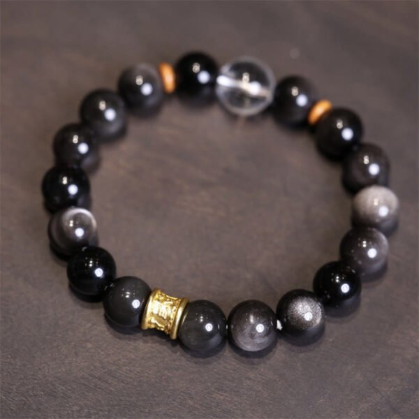 - Material: Silver Sheen Obsidian. White Crystal. Golden Rutilated Quartz. Copper Plated Gold