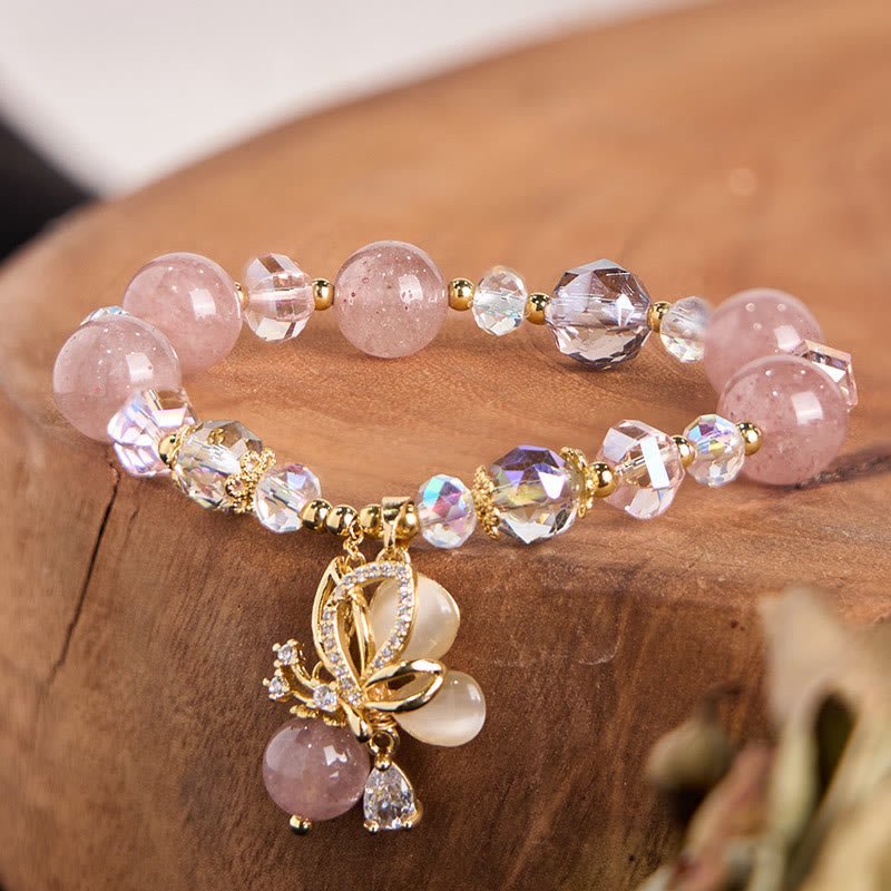 🔮 Gentle Clarity, Worn Daily. Stberry Quartz Butterfly Bracelet by AetherFate