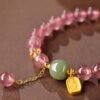 🔮 For When You Need Quiet Strength | Strawberry Quartz Fu Character Jade Positive Bracelet | AetherFate