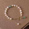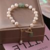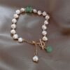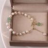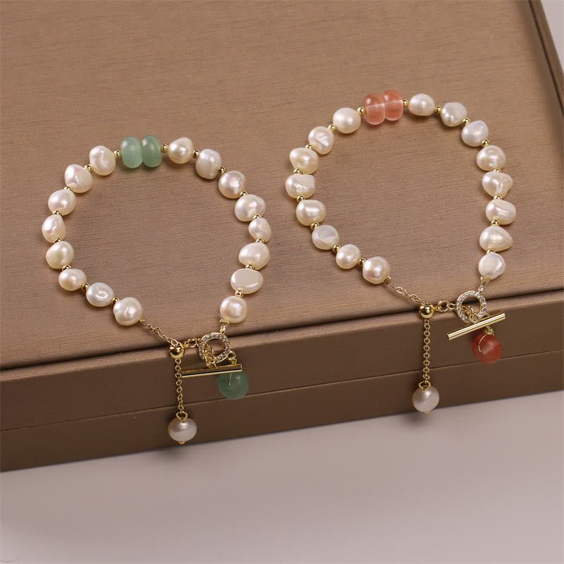 Embrace the soothing energy of our Buddha Stones Pearl Green Strawberry Quartz Bead Healing Chain Bracelet. Adorned with pearls. it radiates healing. wisdom. and optimism. while fostering sincerity and loyalty within.