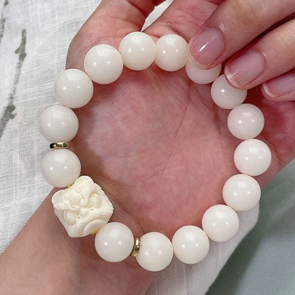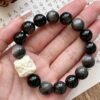 🔮 Silver Sheen Obsidian Bodhi Seed Ivory Fruit Dancing Lion Bracelet by AetherFate