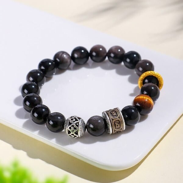 🔮 For When You Need Clarity & Grounding | Gentle Focus, Worn Daily. Silver Sheen Obsidian Tiger Eye Om Mani Padme Hum Bracelet | AetherFate