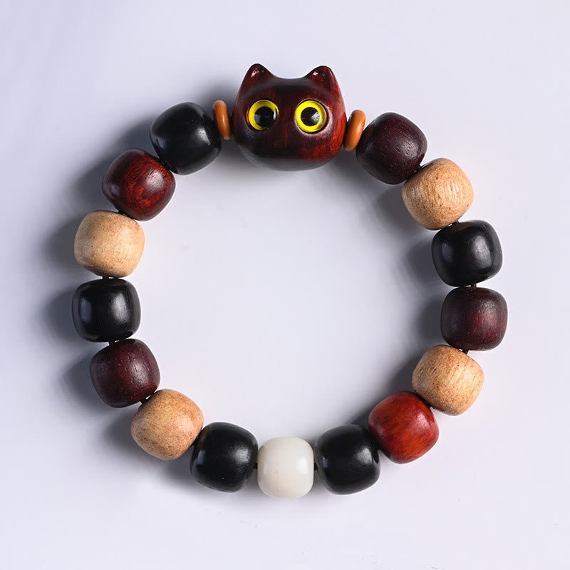 🔮 Small Leaf Red Sandalwood Ebony Wood Cute Cat Engraved Bracelet | Your Quiet Daily Anchor for Gentle Presence | AetherFate