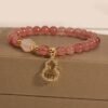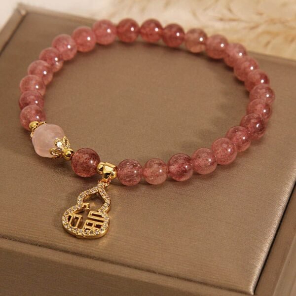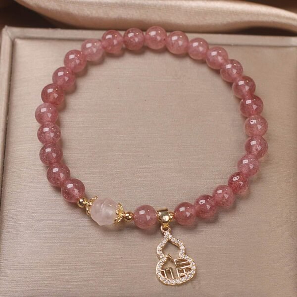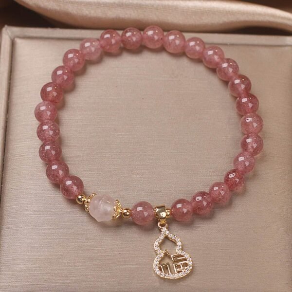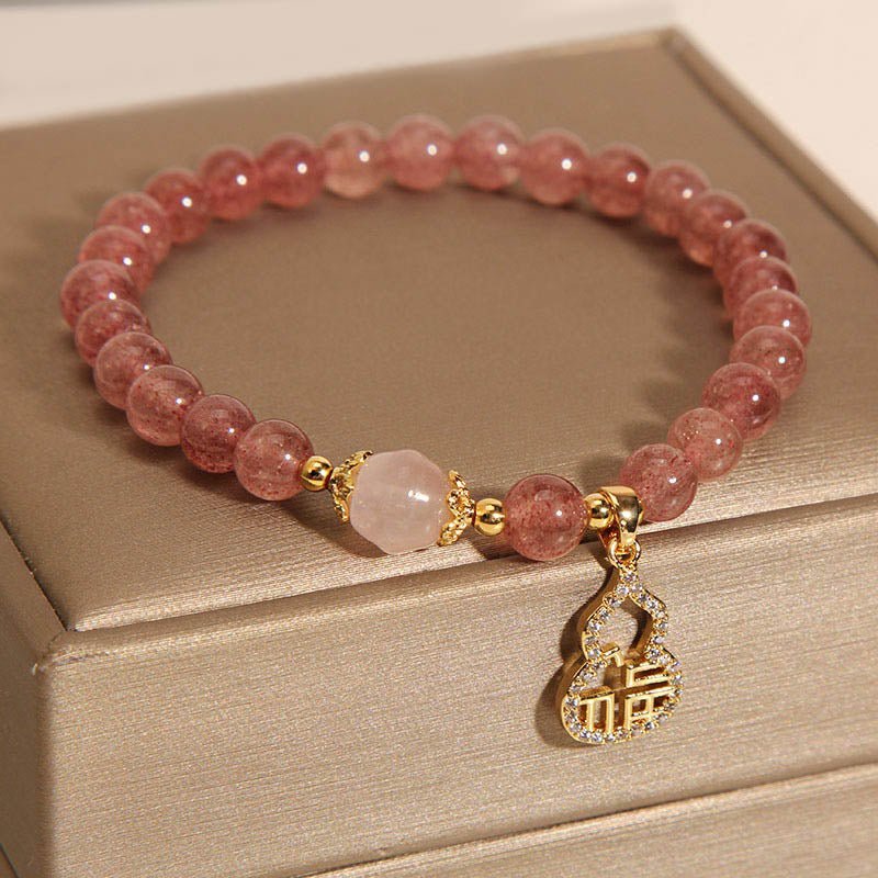 🔮 Gentle Presence, Worn Daily. | Stberry Quartz Gourd Fu Character Charm Positive Bracelet by AetherFate