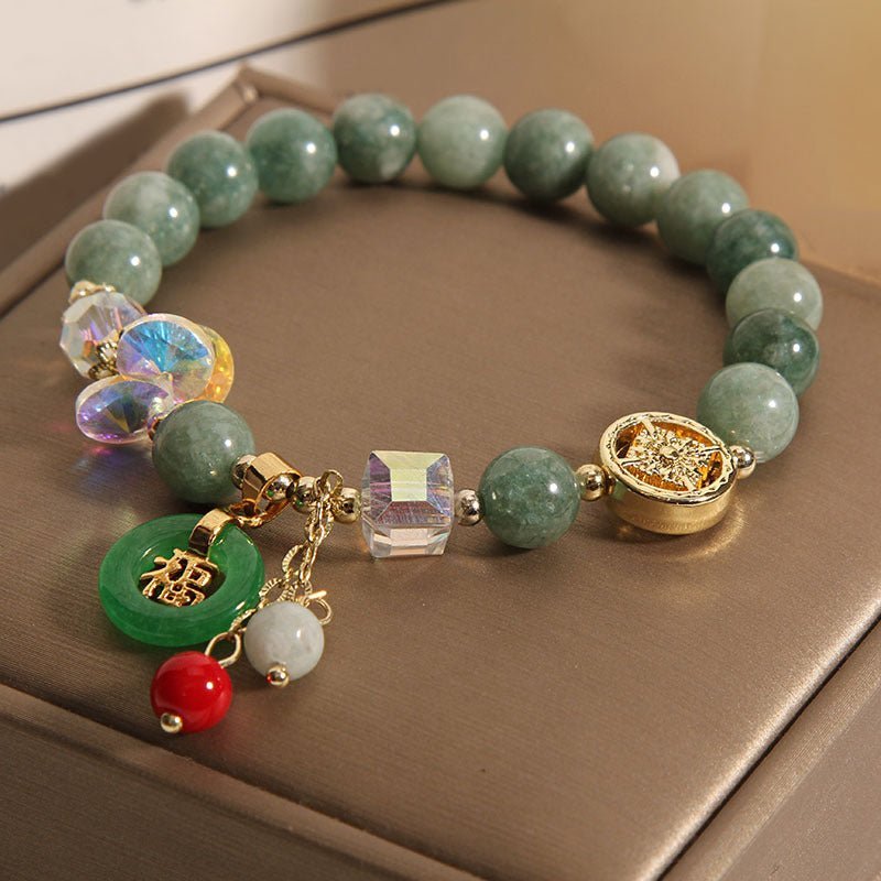 Strawberry Quartz Jade Fu Character Charm Bracelet | Your Quiet Daily Anchor for Quiet Wisdom | AetherFate