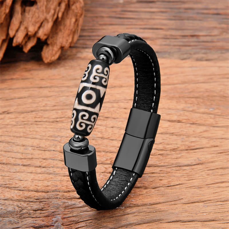 🔮 Tibetan Dzi Bead Blessings Leather Bracelet by AetherFate