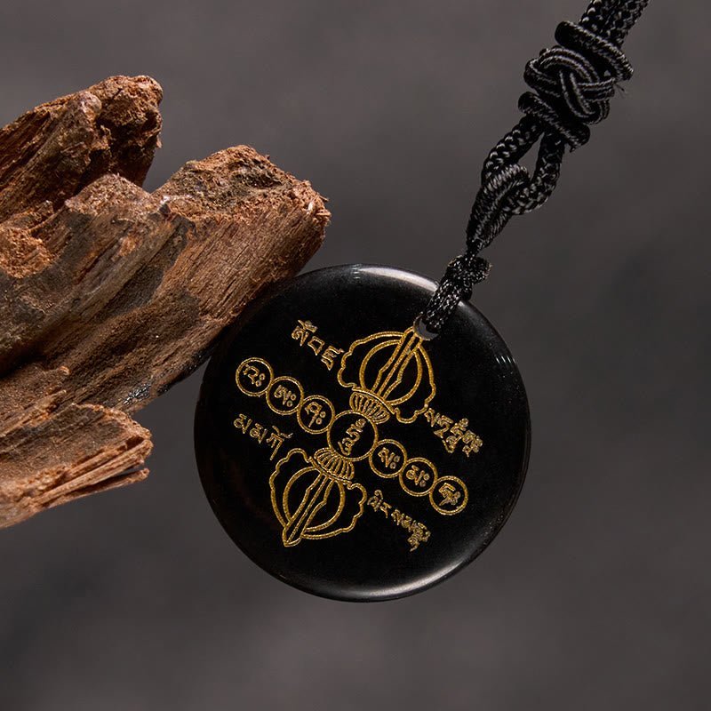 🔮 Vajra Dorje Sanskrit Pattern Various Crystal Black Obsidian Fulfilment Necklace Pendant | Your Quiet Daily Anchor for Clarity & Grounding | AetherFate