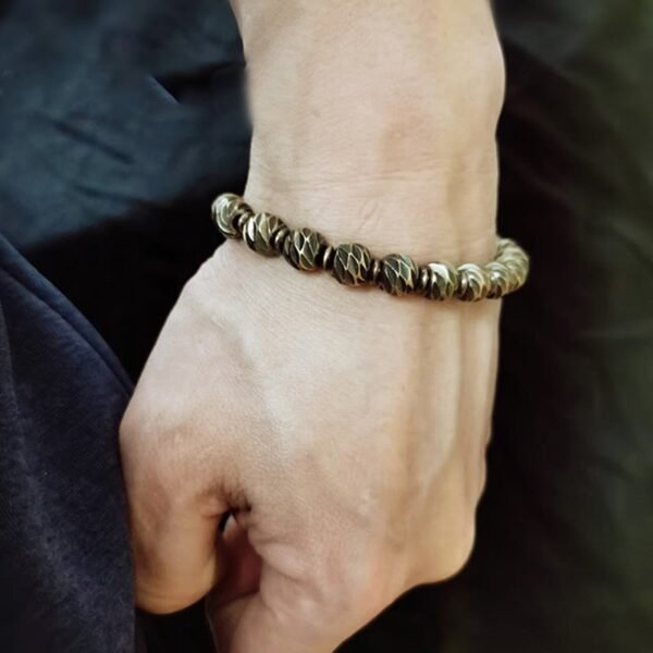 🔮 Quiet Connection, Worn Daily. Vintage Distressed Knife Carving Pattern Copper Brass Beads Bracelet by AetherFate