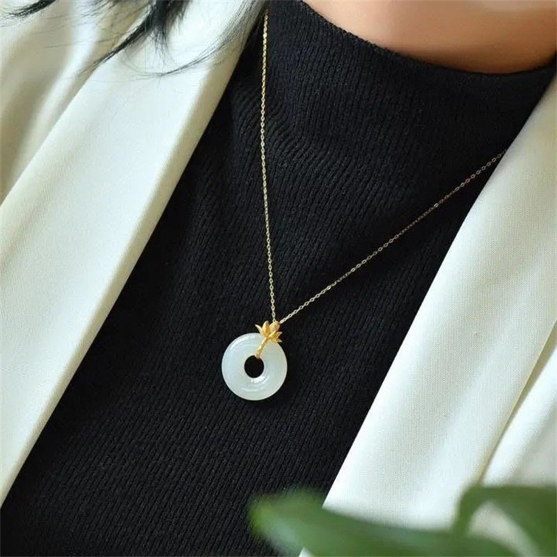 🔮 Quiet Wisdom, Worn Daily. White Jade Lotus Harmony Necklace Pendant by AetherFate